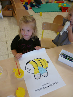 Na de speeltijd mochten de bijtjes de kindtekening van de maand juni maken.