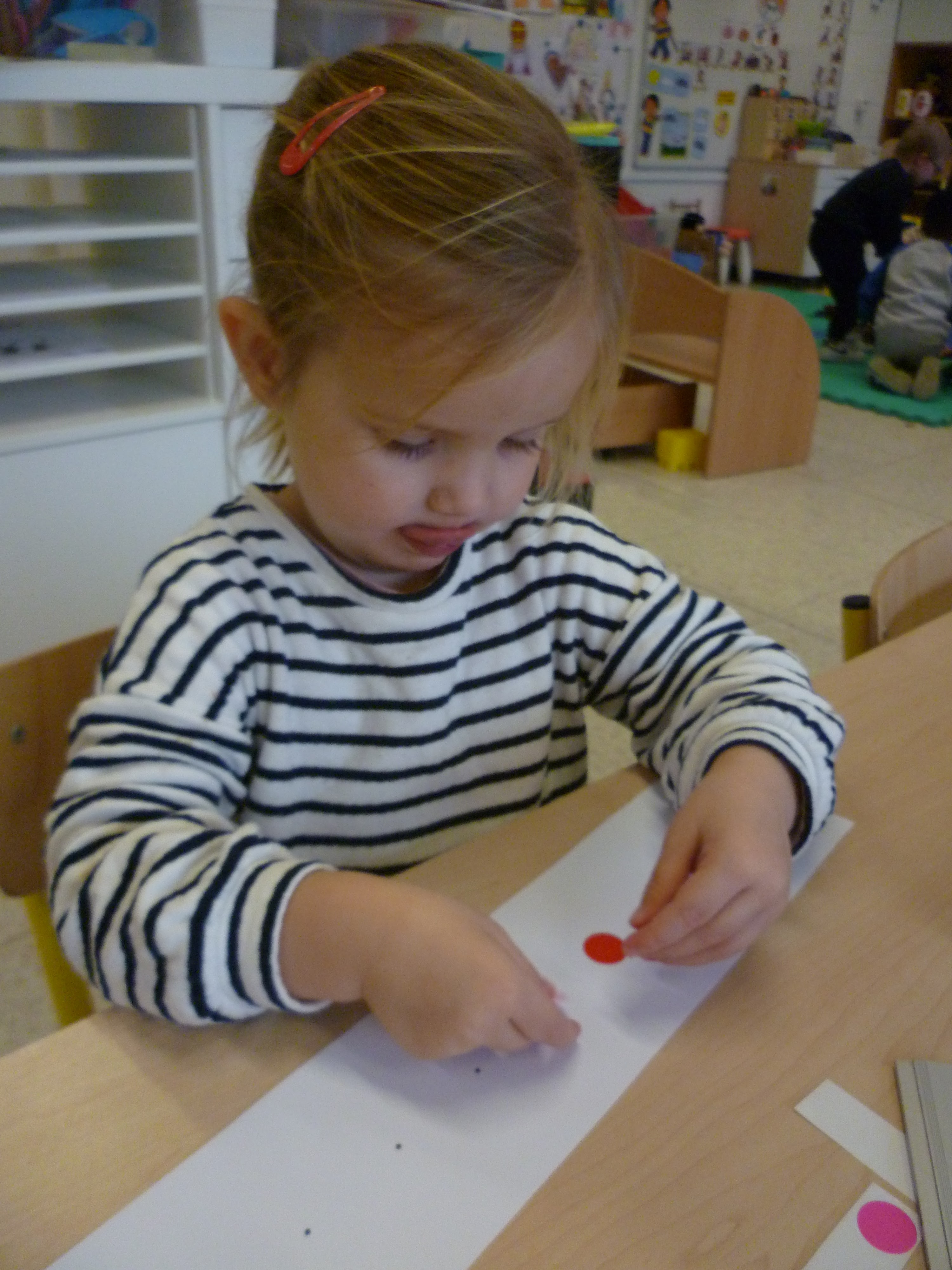 Vandaag mochten de bloemetjes een stickertje plakken op elke stipje (1-1- relatie).