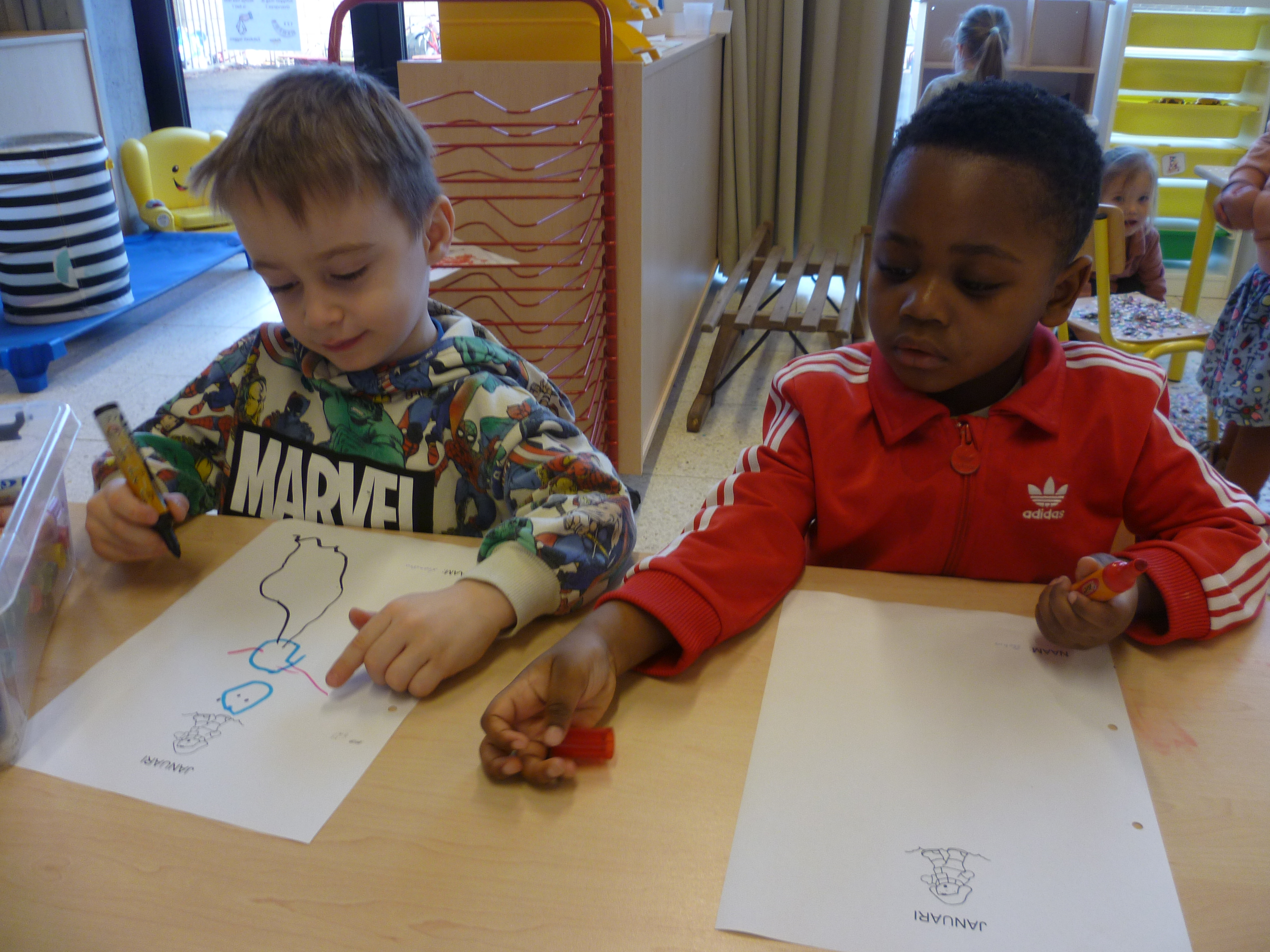 We maakten een tekening van een clown (mannetje van de maand januari).